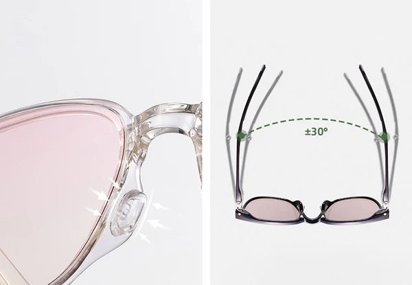 We continue to upgrade folding sunglasses with our self-developed patented INTG-FOLD folding design, which enhances the wearing experience from two dimensions: spatial design and material structure. The folding ratio is redesigned, the legs are hidden, and the storage volume is minimised. The elastic support structure is designed to fit the face precisely, combined with lightweight technology materials for a natural, comfortable and pressure-free wearing experience.